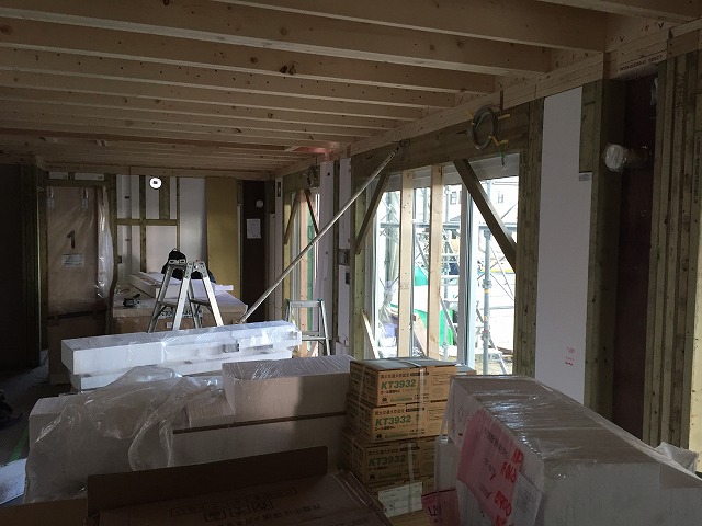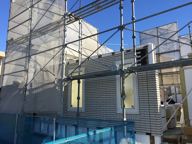 1階の壁といっても、外壁はタイルがついた状態できていますので、半分くらいは完成していますね。